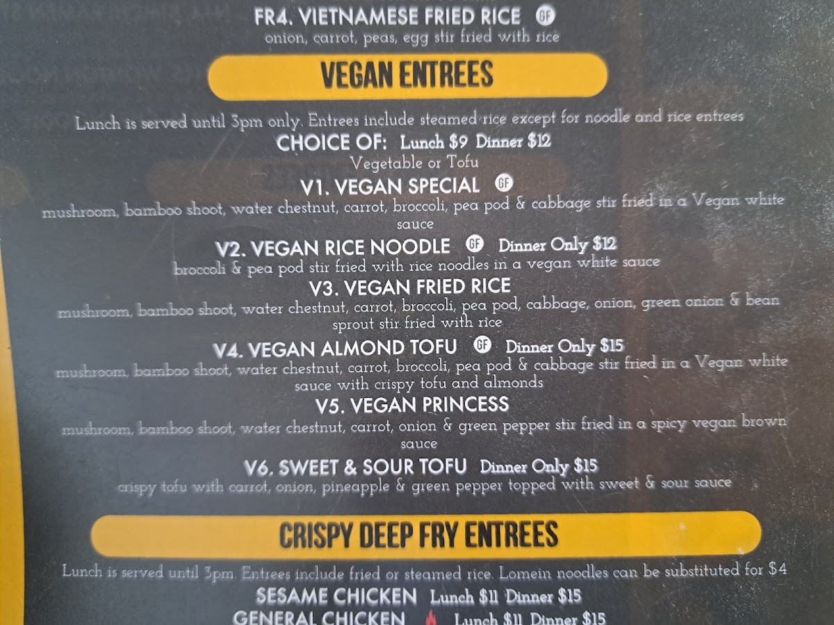Guests can explore a variety of noodle entrees like Pad Thai, Drunken Noodle, and Curry Peanut Noodles, served warm and satisfying on any day when you crave something both flavorful and filling. The crispy deep-fry selections such as Sesame Chicken and Orange Chicken bring a familiar, crunchy pleasure ideal for sharing or a hearty solo meal. For those seeking plant-based options, there are thoughtfully prepared vegan dishes including Vegan Curry Noodle and Sweet & Sour Tofu, fitting seamlessly into the menu’s diverse range.